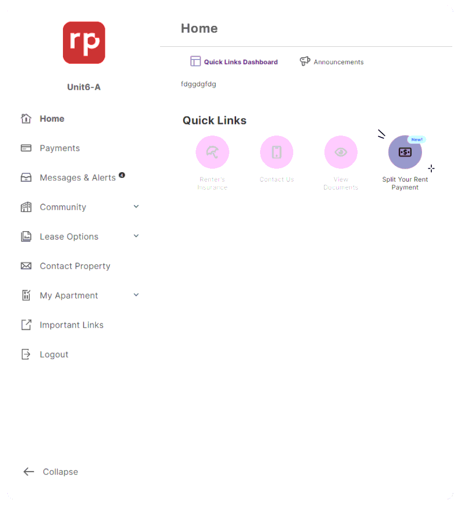 - Residents see “Split your rent payment” upon logging in to their portal.